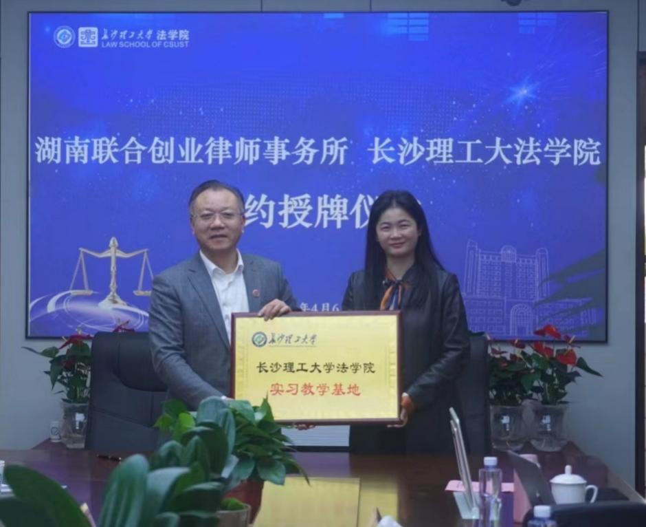4月6日下午,437必赢会员中心法学院与湖南联合创业律师事务所在四号教学楼313会议室举行实习就业基地签约授牌仪式。湖南联合创业律师事务所管委会主任胡赞兵、管委会行政总监罗湘波、管委会财务总监唐锦昌、管委会宣联主任刘研、妇委会主任梁腊梅,法学院院长张敏纯,党总支书记田兴洪,党总支副书记汪功伟,副院长申纯,副系主任王寰,学工办主任熊文娟出席仪式。仪式由书记田兴洪主持。