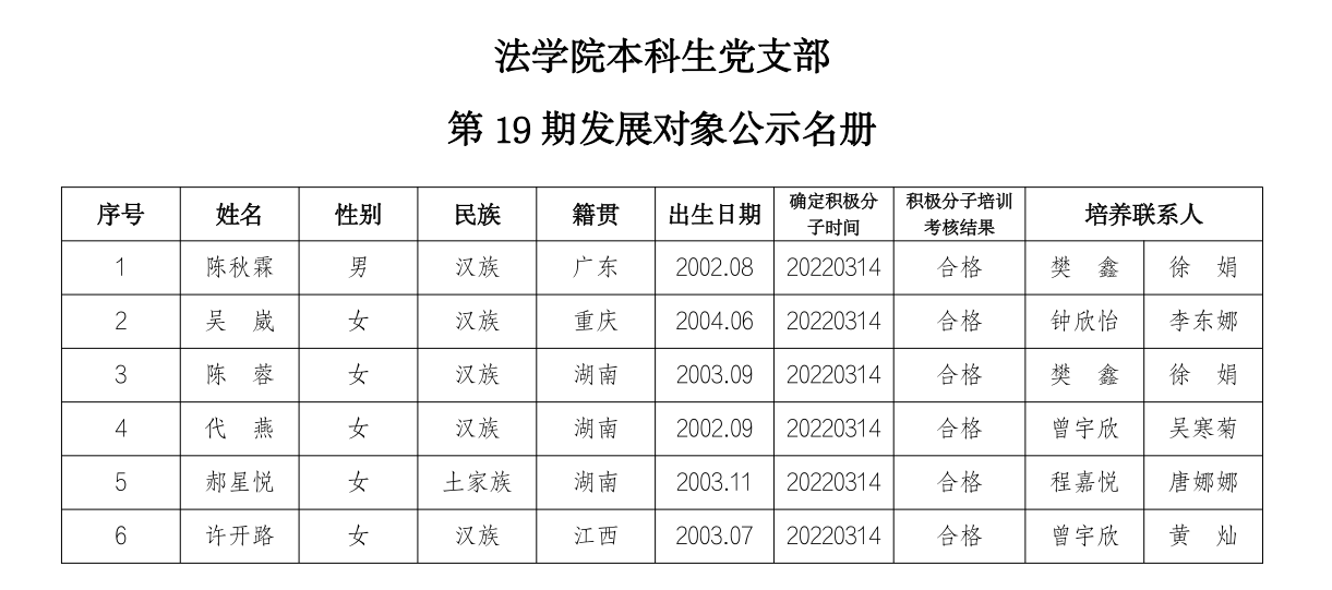 附件:法学院本科生党支部第19期发展对象公示名册