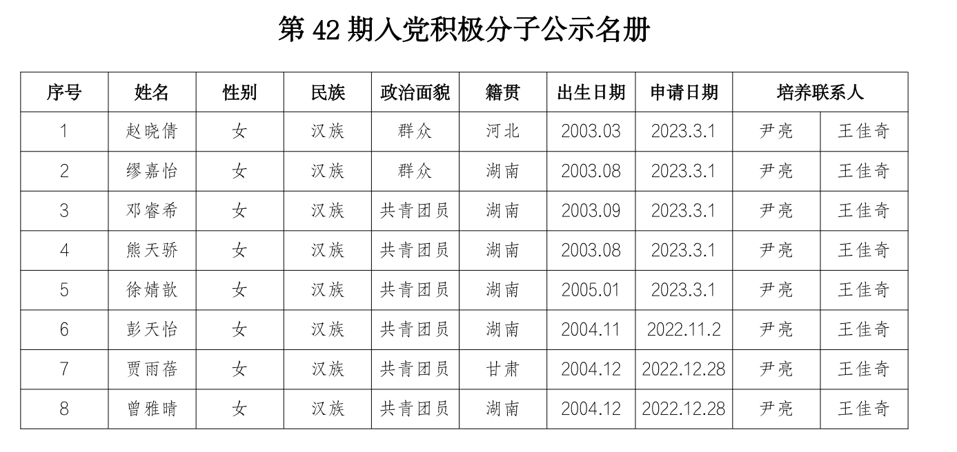附件:法学院分党校第42期入党积极分子公示名册