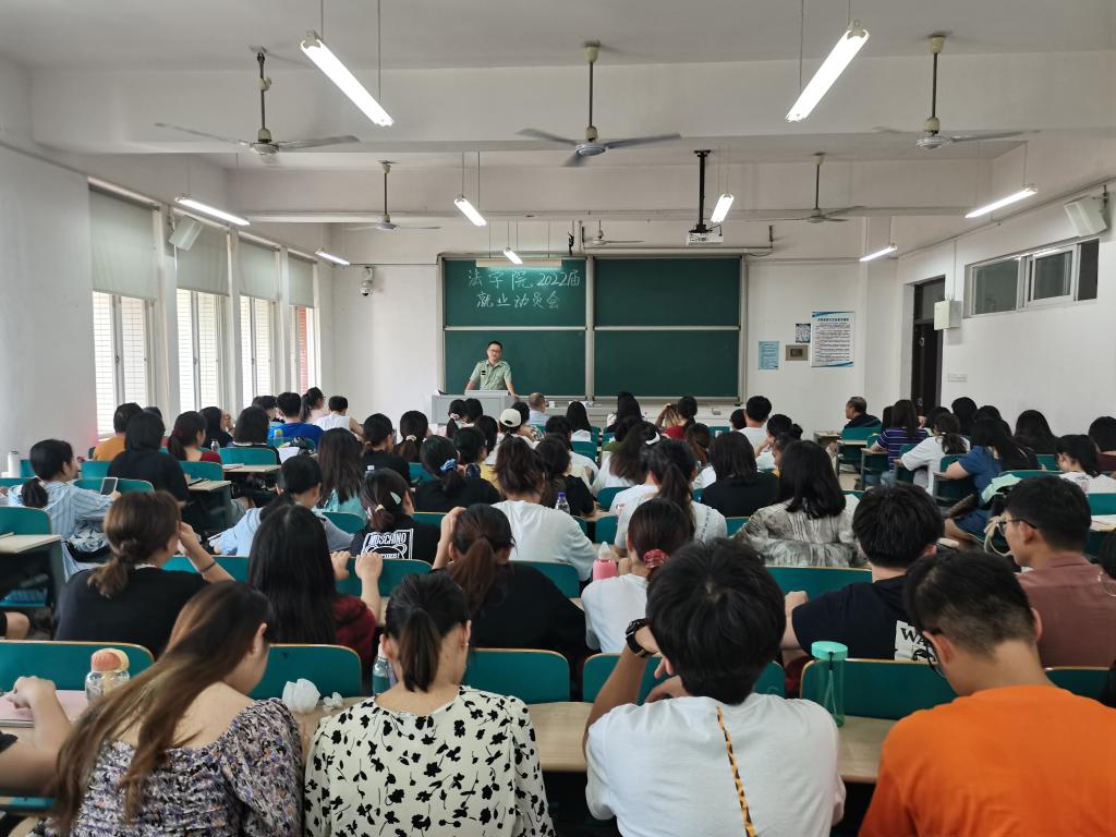 99下午,法学院在文科楼C604举行了2022届毕业生秋季学期就业动员会。法学院院长张敏纯,党总支副书记汪功伟,副院长申纯,班主任高中权,就业专干刘阳以及全体2022届毕业生参加会议。