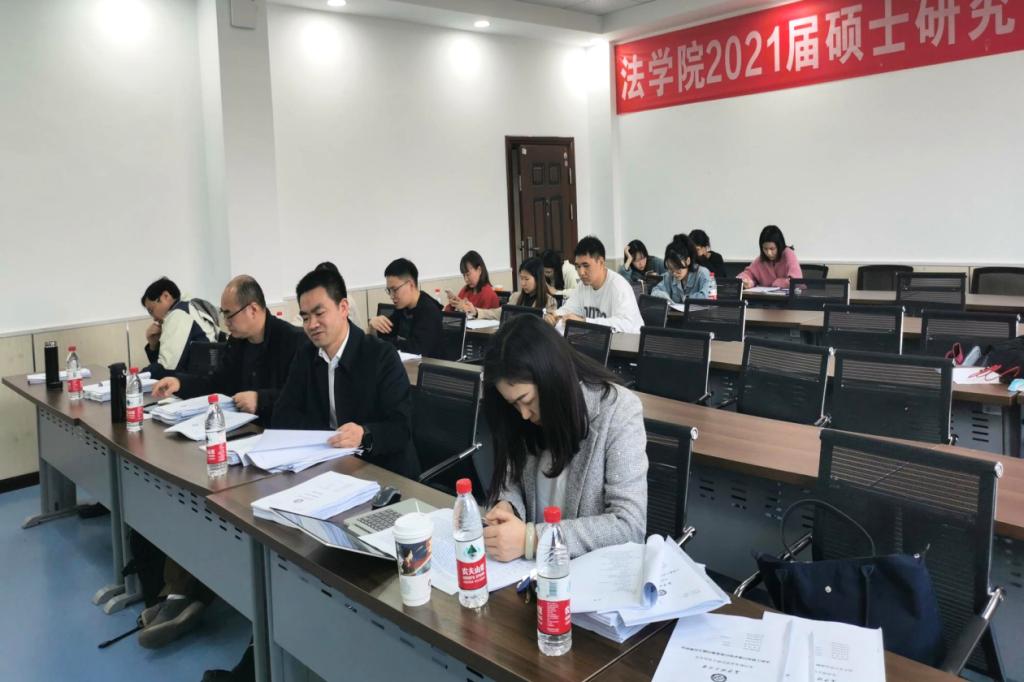 根据学校、学院关于进一步加强硕士研究生毕业论文质量管理的要求,3月11日上午,我院2019级硕士研究生预答辩工作在金盆岭校区7教308、319教室如期进行。本次预答辩邀请到中南大学法学院余卫明教授、中国水利水电第八工程局有限公司总法律顾问周本强作为校外专家参与论文指导,并由王红艳、易顶强、姜明、申纯、高中权、杜卫红、刘文莉等几位导师组成专家组。2019级全体硕士研究生参加此次预答辩。