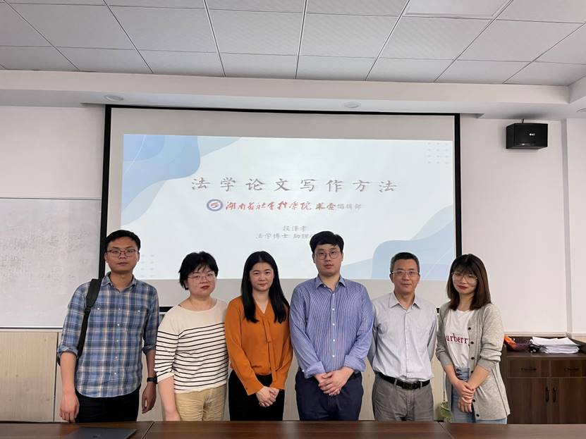 5月6日,法学院在金盆岭校区7教319教室举办了主题为《法学论文写作方法》的法律硕士第七期学术沙龙,由段泽孝博士主讲。段泽孝博士是437必赢会员中心的优秀校友,中南大学博士毕业,现任湖南省社会科学院《求索》杂志社助理研究员、法学编辑,主要从事行政法学研究和《求索》杂志法学编校工作。此次活动由张敏纯院长主持,王新生教授、王寰博士、刘明萍博士、辅导员刘阳参加,全体硕士研究生参加了此次沙龙。