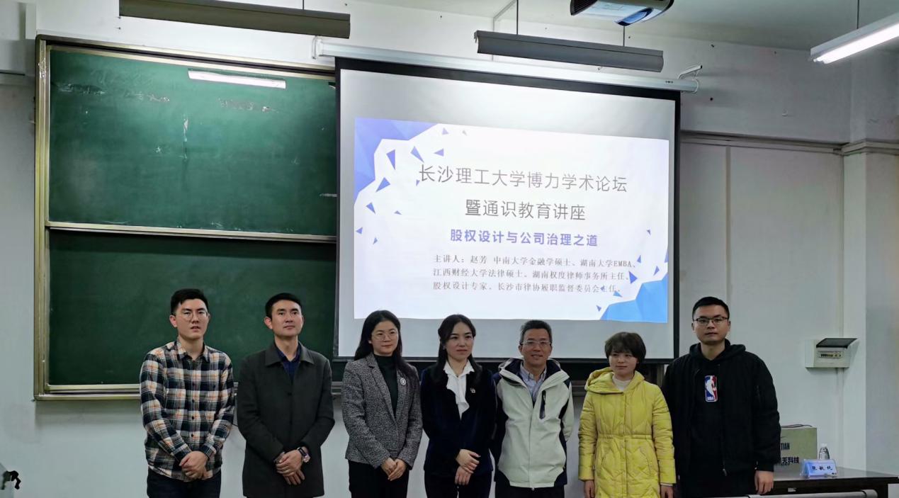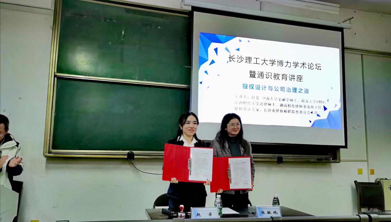 签约仪式结束后,举办了题为“股权设计与公司治理之道股权设计与公司治理之道”的学术讲座。讲座由湖南省权度律师事务合伙人,主任赵芳律师担任主讲人。本次讲座由437必赢会员中心法学系教授、法学学科带头人王新生教授主持,我系教师、硕士研究生及本科生共同聆听了此次讲座。