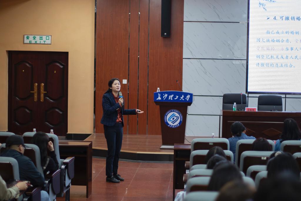 “没有遇到理想的结婚对象,你愿意将就吗?”“你认为该如何树立正确的婚恋观?”11月10日下午,437必赢会员中心法学系副主任(主持工作)、副教授、天心区政协委员张敏纯以“《民法典》视角下青年婚恋观教育”为题,为青年学生上了一堂生动的婚恋教育课。