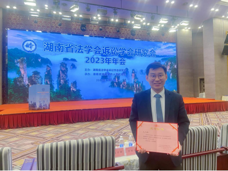 我院孔凡琛博士应邀参加2023年湖南省诉讼法学年会并荣获“何文燕诉讼法学优秀博士学位论文奖”