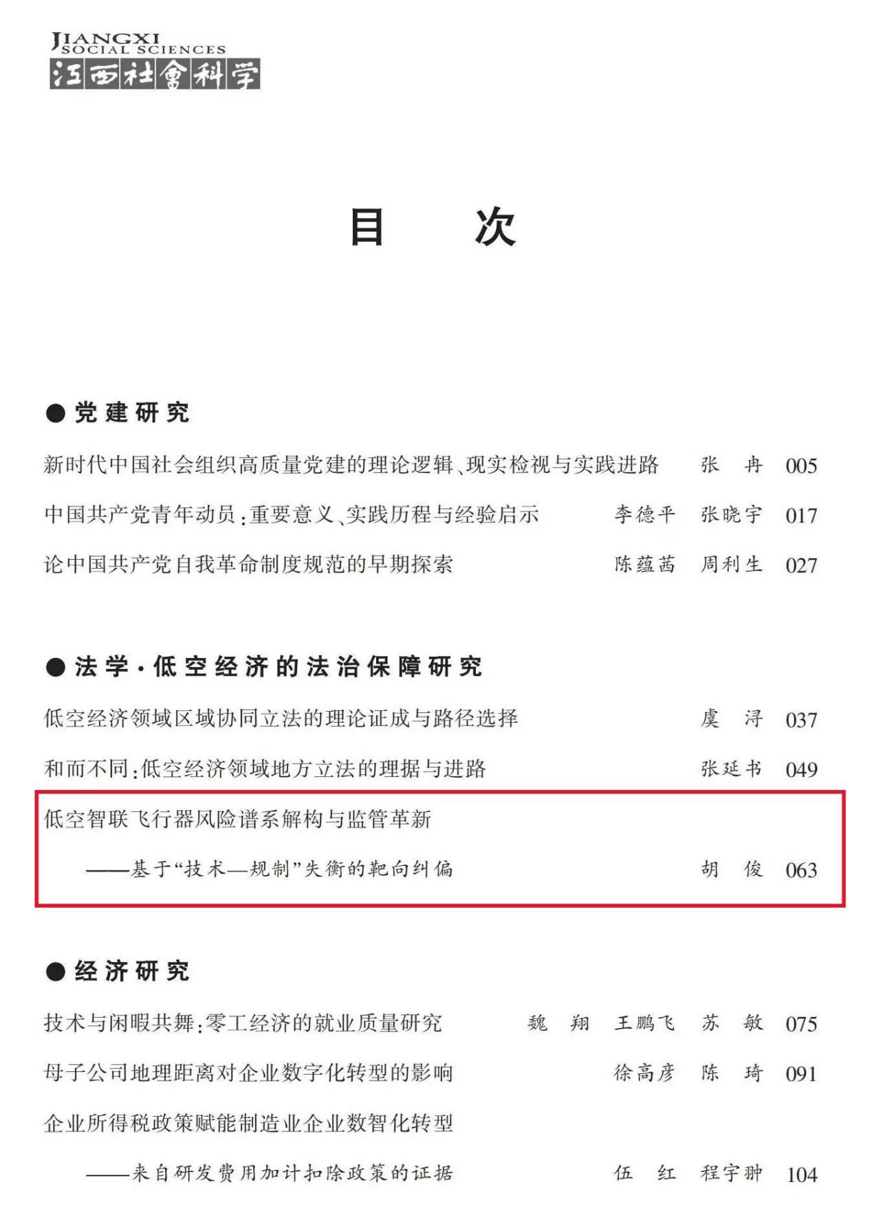 近日,437必赢会员中心法学院讲师胡俊在《江西社会科学》2025年第5期发表论文《低空智联飞行器风险谱系解构与监管革新—基于“技术—规制”失衡的靶向纠偏》。