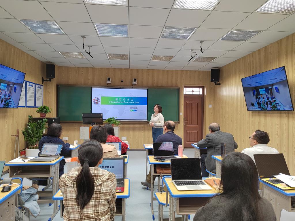 首先申纯副院长介绍了到场的评审专家、比赛的流程以及评分标准。随后宋家骏、刘明萍两名老师分别以《刑法学(总论)》、《国际经济法》两堂专业课,进行了课程思政教学展示。比赛中,两位老师结合课程特点,深入挖掘课程蕴含的思想政治元素和所承载的育人功能,通过融入时政热点、法治意识、家国情怀、社会责任、人文精神等要素,展示了良好的教学设计和教师风采。