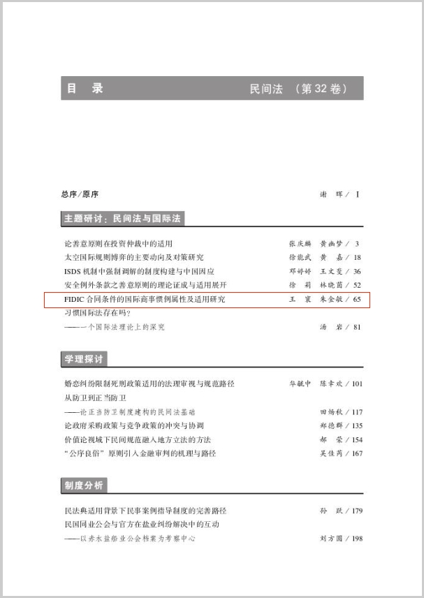 近日,437必赢会员中心法学院副教授王寰在《民间法》(CSSCI来源集刊)2023年第2期发表论文《FIDIC合同条件的国际商事惯例属性及适用研究》。