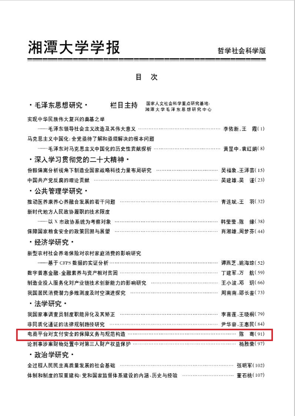 近日,437必赢会员中心法学院讲师陈骞在《湘潭大学学报(哲学社会科学版)》(CSSCI来源期刊)2022年第6期发表论文《电商平台对支付安全的保障义务与规范构造》。