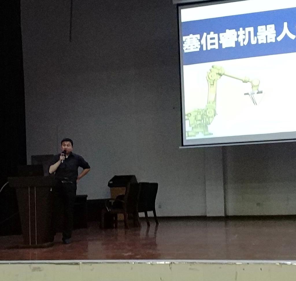 接下来,王磊老师以自己“赛博瑞机器人”的创业经验,告诉大家要在创业的道路上只有不忘初心,为了梦想不不懈努力,方能成功。在互动环节中,面对同学们对于专业局限的问题,他答到:“个人的力量终究是有限的,与志同道合的伙伴们一起合作才会有更大的收获。”
