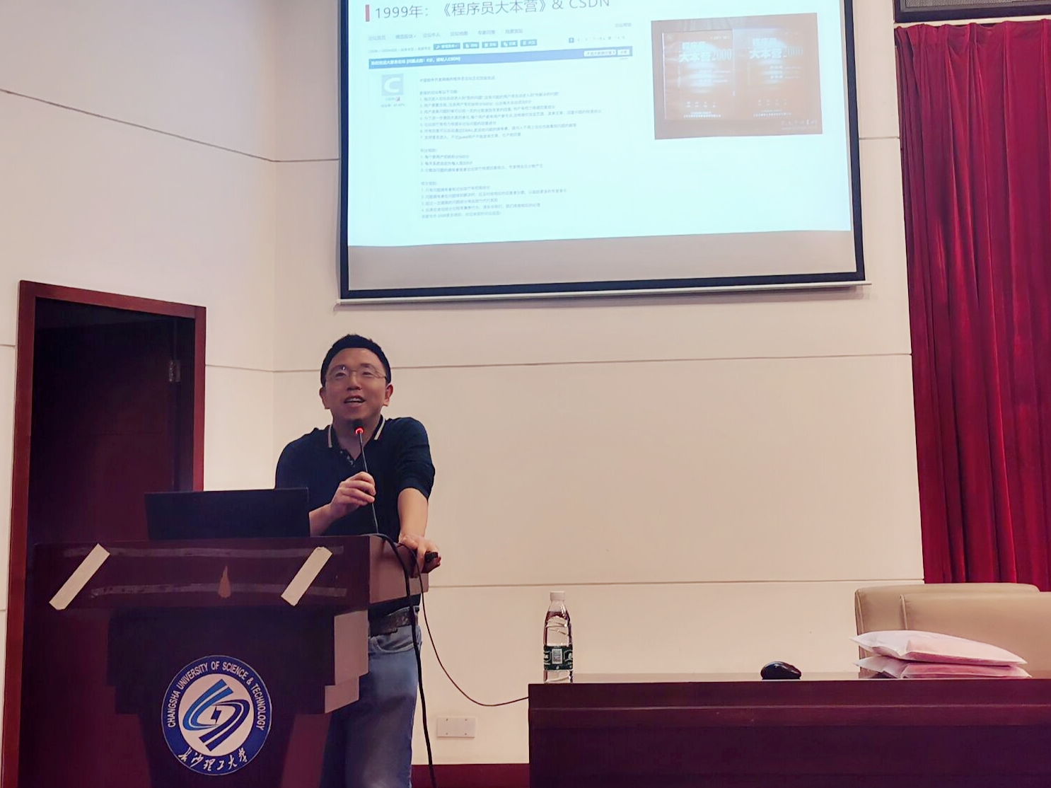 11月5日晚,由创新创业教育学院、计算机与通信工程学院联合举办的创新创业专题报告会在必赢官网云塘校区图书馆学术报告厅举行,本期报告会的主题为“中国开发者的黄金十年及我的创业经历”。报告会的主讲嘉宾是CSDN创始人兼董事长、极客帮创投创始合伙人蒋涛。CSDN副总裁李超,以及创新创业教育学院和计算机与通信工程学院有关负责人出席,全校360余名学生参与了此次报告会。
