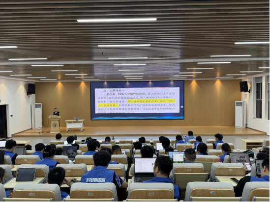 在主题培训环节,湖南投智网络科技有限公司总经理尹青军围绕大赛评审规则展开系统讲解,结合真实案例深入解析评分标准、评审细则、常见问题及优化策略。他强调,项目团队需聚焦逻辑结构、技术路径、市场前景及团队分工等核心要素,做到内容扎实、重点突出,全面提升项目在评审中的综合竞争力。