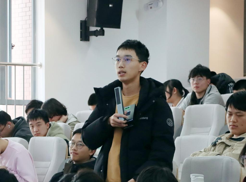 互动环节中,同学们积极提问,围绕人工智能的伦理问题、未来发展趋势等热点话题展开讨论,现场气氛热烈。徐琥博士耐心解答,鼓励同学们在学习中勇于探索、敢于创新。此次讲座为卓越工程师学院的同学们提供一个与行业专家面对面交流的宝贵机会,拓宽同学们的学术视野,激发对人工智能领域的浓厚兴趣。