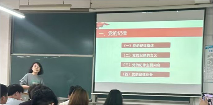 4月22日第一节党课上,易亭亭以《党的纪律与作风》为主题,深入剖析了党的纪律的重要性,强调了遵守纪律对提升党员素质和增强组织凝聚力的关键作用,使得学员们理解纪律建设在新时代党的建设中的重要地位。