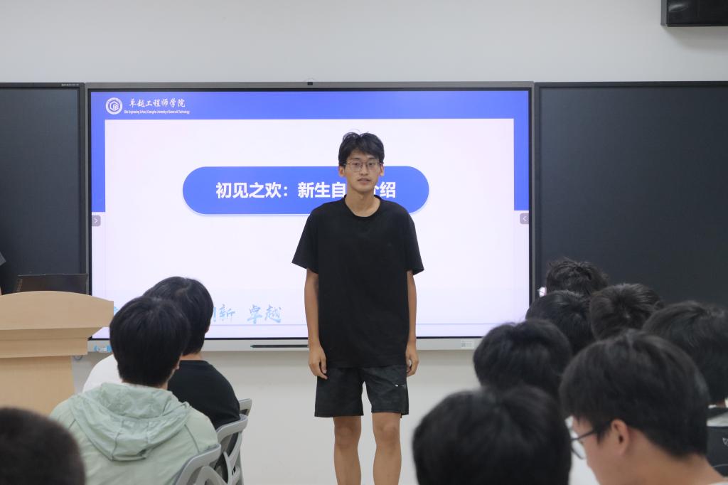 班会在热烈温馨的氛围中拉开帷幕。卓越1班班主任李凯、2班班主任李昊对本班新生表示热烈欢迎。老师和带班干部们依次做了自我介绍,而后进入了轻松愉快的“破冰”环节——新生自我介绍。来自五湖四海的同学们依次走上讲台,或幽默风趣,或真诚朴实,分享了自己的家乡、兴趣爱好以及对大学生活的憧憬。现场掌声与笑声不断,初见的陌生感在欢声笑语中逐渐消融,同窗情谊悄然建立。两个班竞选产生军训负责人和寝室长,同学们表示接下来的日子里讲做好集体服务,相互支持配合。