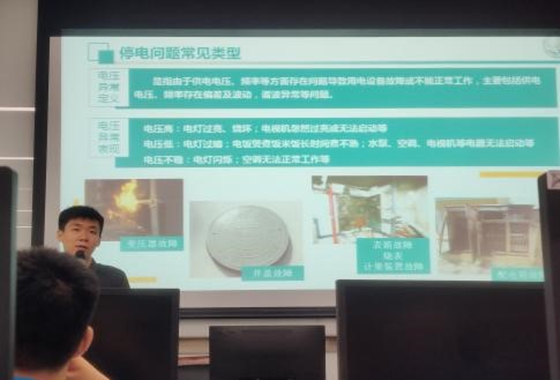 上午,国网公司齐彦艳老师为队员们讲解园区安全和消防注意事项,并与实践队员签订相关安全协议。周博然老师具体讲述故障报修基础入门知识,让队员们迅速了解到报修基础和故障判别的诀窍。同时,周老师也对队员们认真专注的学习态度作出表扬与肯定。下午,国网公司白玉老师为队员讲解工单填写、质检应用、沟通话术等问题,指出实习生们经常犯的一些错误案例,并悉心教授队员们工单填写中服务类型的甄别,地址填写和差错评定的知识。