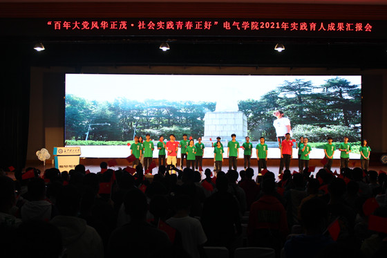 10月23日晚,电气学院在金盆岭校区五教大礼堂举办2021年实践育人成果汇报会。教务处实践教学与创新教育管理科科长马明松、校团委兼职副书记彭怡峰、组织宣传科肖凤,经管学院党委书记丁丹、党委副书记唐青,电气学院党委书记符慧林、电气学院副院长唐欣、副院长马瑞、副院长王文,电气学院党委副书记任艮丰以及实践队带队老师何涛、周腊吾、孙辰昊、杨忠毅、伍万能和学工办老师们出席,电气学院2021年暑期“三下乡”全体实践队员、2021级全体本科生、经管学院2021级新生代表参加此次汇报会。此次汇报会由电气1910班熊金玲、电卓2001班冯悦航、电子2002班曹健韬、工自2001班张伊共同主持。