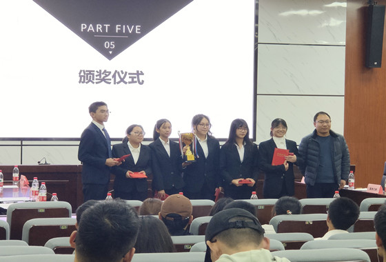 在观众提问环节,观众对比赛中的疑点提出自己的问题,场上辩手一一解答。接下来,领队刘子铭以“我们要勇于挑战自己的宿命,成为孤天里的白鹤”结束辩论赛。随后,评委程子艺点评,提出了关于这个辩题的独特理解和对金石辩论队未来发展的期望“我们要追求自己的所想,挑战宿命”。最后,代表反方的电气2103班获得冠军,舒佳蕾获得决赛最佳辩手称号,孔迪、吴慧敏获得半决赛最佳辩手称号。