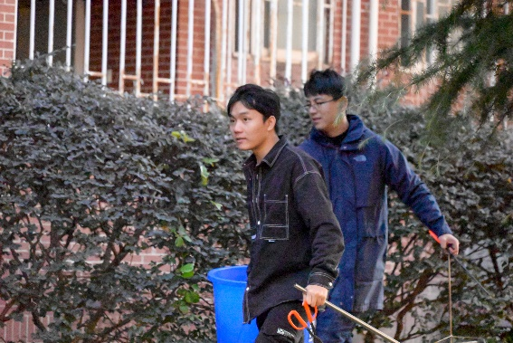 参与实践活动的同学和老师按照分工,针对性地对至一、至二宿舍楼栋内外草坪、楼道、走廊、窗户、楼梯墙壁等地进行打扫,清理宿舍周边的各类垃圾,并引导同学规范停放电动车,一同维护美好校园。在与宿舍阿姨共同劳作沟通交流的间隙,同学们也真切地了解到由于大家平时随意地行为,给宿舍卫生清洁造成的极大困难。电气2005班蒋瑾杰表示:“原来我们吃外卖留下的湿垃圾如此难处理,要清洁真心不易,真心感谢阿姨们的辛勤工作,才让我们有一个如此温馨的宿舍环境。”