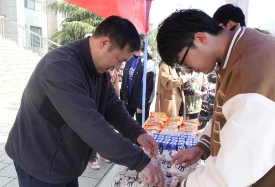 为给电气考研学子送温暖、送祝福,为漫长而艰苦的考研路增添一份不一样的甜蜜和色彩,点亮考研学子的美好未来,12月7日,电气学院于云塘校区图书馆前坪举办“考研加油系列活动”。电气学院党委副书记任艮丰、团委书记田孟萍、20级辅导员杨宸君和19级辅导员范凯来到现场为考研学子加油打气。