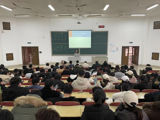 为确保毕业设计和毕业实习工作的有序推进,引导同学们做好准备工作,1月3日下午,电气学院于综合教学楼B302召开电气专业2018级毕业设计与毕业实习动员会,电力系主任邓丰、副主任唐夏菲、2018级辅导员田孟萍出席,2018级全体在校学生参加,此次动员会由电力系唐夏菲老师主讲。
