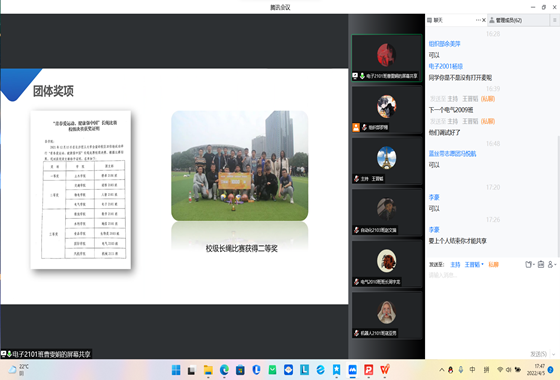 4月5日下午,电气学院2021-2022学年“五四评优”先进团支部答辩会于腾讯会议线上举行。学工办老师田孟萍、杨宸君、范凯、王迪、张一鸣及分团委各部门代表出席,本科生19级、20级和21级各班团支书参加本次答辩会。本次活动由智能电网2102班王晋韬主持。