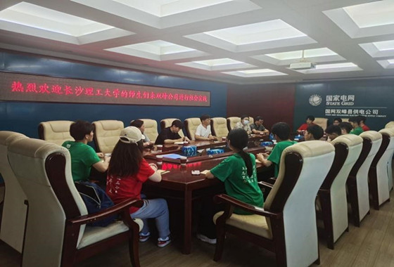 上午11点,供电公司举行见面会,国网双峰县供电公司人资部主任廖雄、营销部主任阳敏艳、配电部主任刘运达、项目中心主任杨宇涛、电气学院赴国网双峰县供电公司实践队带队老师张一鸣以及全体实践队员参加。会上,廖雄强调在实践过程中首要注意的是安全问题,要求各队员实践期间时刻遵守“三不原则”—不伤害自己、不伤害别人、不被别人伤害;阳敏艳表示实践队员们正值青春,要多问多实践,将理论与实践结合起来,提出了与公司员工相互尊重、相互理解,在实践过程中保持虚心求教的态度;杨宇涛交代了实践活动期间纪律、工作时间等注意事项;最后,张一鸣表示十分感谢公司能提供这次宝贵的实践机会,并要求实践队员一定要重视安全、服从纪律、珍惜实践时光。会后,实践队员根据专业分为营销组、配电组、建设组、财务组、会计组,投身分组实践。