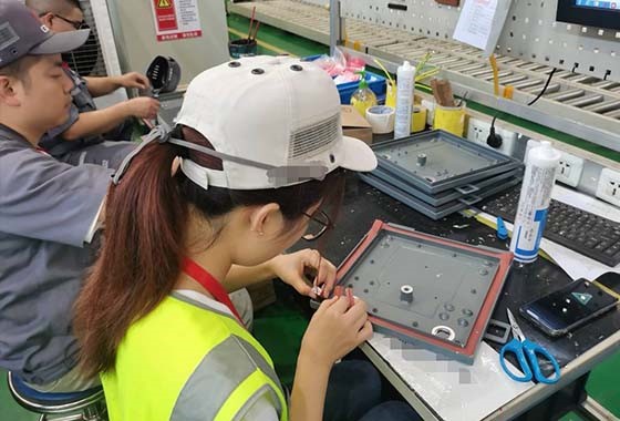 检验是产品质量的重要保障。7月13日,株洲实践队队员张逸舟、杨金雨、周琦敏跟随质检区彭师傅展开了产品防水检验工作。