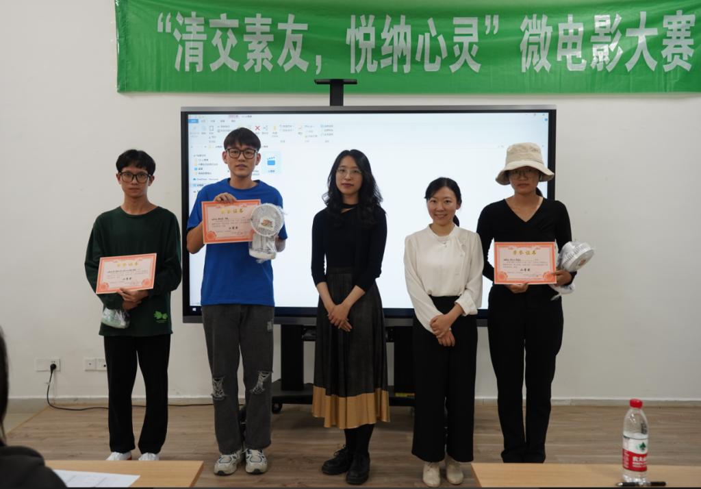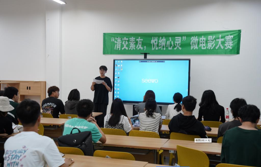 本次决赛共有全校各学院15组作品入围,决赛现场分为作品介绍、视频播放、颁奖典礼三个部分。在主持人的引导下,参赛选手轮流上台,讲述自己的创作灵感和创作时的想法,随后展示自己的作品。参赛视频紧扣“清交素友,悦纳心灵”这一主题,通过展示大学生宿舍人际关系、班级人际关系、师生关系、亲密关系、亲子关系等内容,展现大学生在人际交往和情绪管理等方面遇到的心理困惑以及解决方法,内容紧贴大学生学习生活实际,形式新颖活泼,给人带来启发和思考。