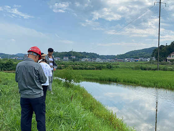 随后,队员们前往祁韶线的另一杆塔B进行现场勘测。杆塔B是一座位于水田中的杆塔。相对常规杆塔,水田较为潮湿,易导致杆塔的接地体生锈,从而影响杆塔防雷。设备主任向队员们补充道,巡查时可能面临山陡、地滑、蚊虫叮咬等问题,在保证线路安全稳定的同时亦需要注意自身的安全。