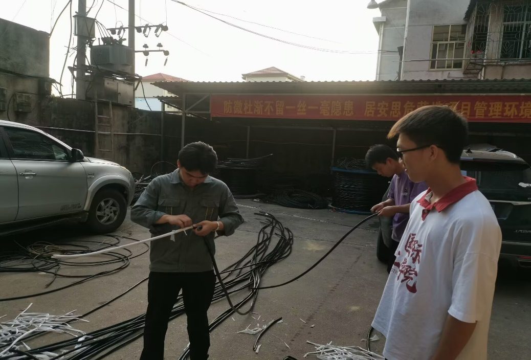 经验丰富的老电工师傅说:“一年有没有,正值七八九”。7月、8月和9月被认为是迎峰度夏的特殊期间,居民用电量急剧上升,电气设备运行时间长,面临高温压力。采集集电箱定位数据、及时检修成为确保居民正常用电的重要任务。虽然是周末入伏之时,实践队员们毫不退缩。他们分为两路行动,一路跟随师傅深入衡阳县各个地方,采集低压台区的集电箱数据,通过监测低压台区,确保居民在酷暑中安稳用电。另一路队员与师傅一同进行农排智能电表的前期组装和剥线等准备工作,为第二天师傅们上杆装表做好准备。