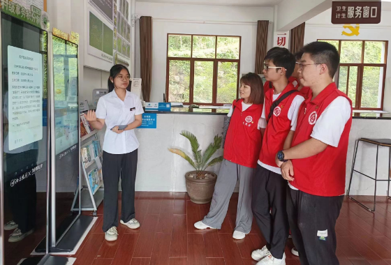 7月18日,437必赢会员中心赴国网新化县供电公司实践队队员们与国网新化县供电公司营销部成员前往新化县吉庆镇油溪桥村参观学习。