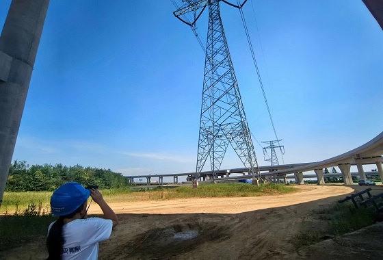 保障输电工作安全稳定运行才能保障千家万户的用电安全。基于此,学习输电安全知识对于实践队员来说也是必不可少的。实践队员们来到作为五岗、岗艾、常岗三条输电线枢纽的岗市变电站,以及长常北线高速施工现场。由于当地正在修建一条山区公路,为防止施工过程威胁到线路安全,巡检站派专人现场关注施工动态,并投入大量监控和报警器来监视一切可能的安全隐患。在这里,师傅们向实践队员们详细地讲解了输电线路保护的要点,以及保护输电线路安全的注意事项。学习了理论知识之后,实践队员们配合利用望远镜看到了输电杆塔的细节部分,对于杆塔的构造有了直观的感受,对安全细节有了深入了解。