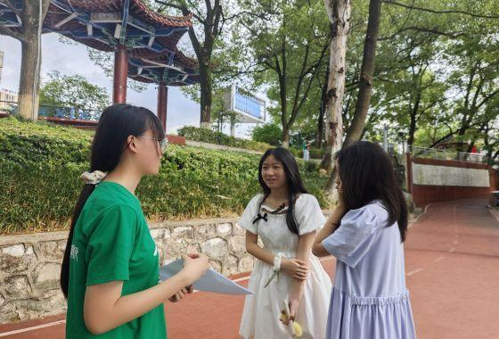 实践队员张申迎主要针对常用互联网软件和其对自身情绪是否影响,对两位初中女学生进行了简单采访。两位学生回答:“抖音刷完会有一种空虚感,而小红书和哔哩哔哩则相对充实一些。”在最后张申迎对其进行了心理健康的科普,并介绍了“深呼吸法”“自我暗示法”等调节心理的方法。