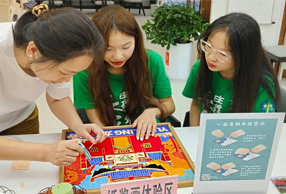 在志愿者亲身示范与耐心教学下,队员们掌握了作画时的基本要领。随后,在一旁专业人士的指导下,实践队员们亲身体验了纸浆画的制作过程,从调制纸浆颜色到用细小的竹签、牙签绘制图案,每一步实践队员们都做的格外小心。终于,在经过了漫长的制作时间后,实践队员们做出了属于她们自己的纸浆画。