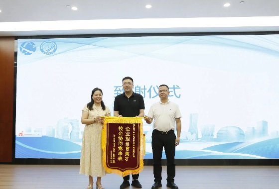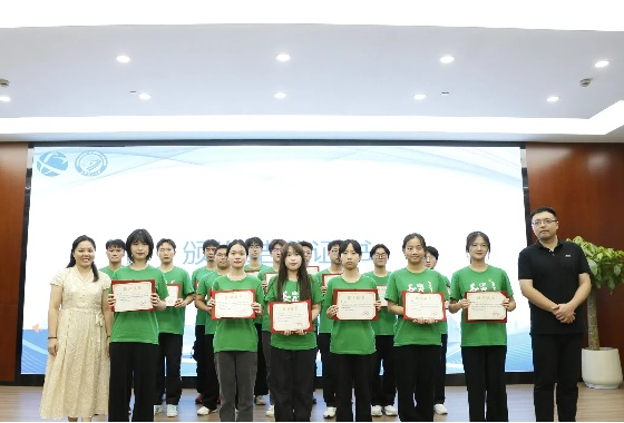 最后,学校代表向公司代表赠送锦旗,各领导向实践队员们颁发实践证书并合影留念。