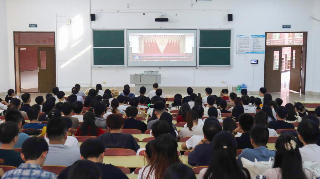 会议在庄严的国际歌声中拉开序幕。全体与会人员认真学习了《中国共产党第二十届中央委员会第三次全体会议公报》,观看了优秀校友党员肖钧文、周顺抗洪保电的先进事迹报道。随后,支部4位党员代表进行公开承诺践诺,表示将严格对照党章,以党员标准严格要求自己,坚决服从组织决议,认真履行党员义务,为学院高质量发展贡献个人力量。