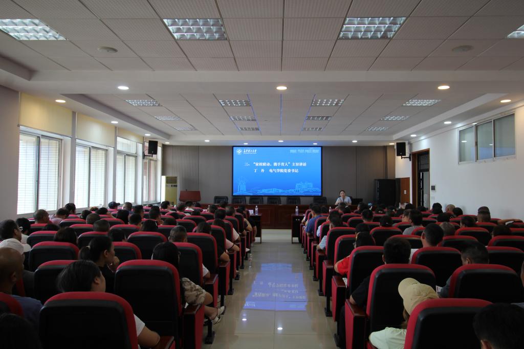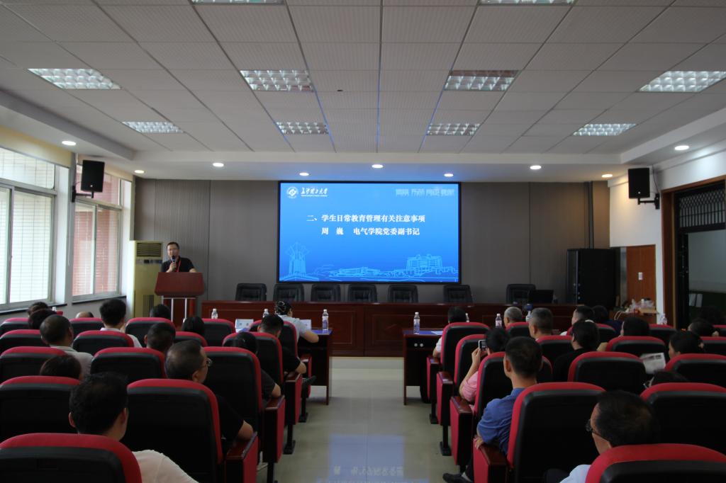 9月15日上午,电气学院于工一B503召开2024级新生家长会,电气学院党委书记丁丹、党委副书记周巍、副院长王媛媛以及学工办全体辅导员出席,2024级新生家长参加会议的形式分为线上观看直播和线下互动。