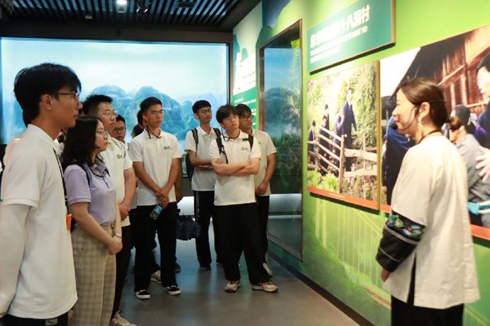 第二站,实践队走进“精准扶贫”的首倡地——十八洞村。在脱贫攻坚纪念馆,队员们通过图文资料和实物展示回溯村庄从贫到富的奋斗轨迹,解码“精准扶贫”实践逻辑。实践队沿着习近平总书记来访的路线走进十八洞村苗寨,感受党的政策给当地带来的变化。泥泞小路改新貌,破旧木屋换新颜,特色产业蓬勃发展。