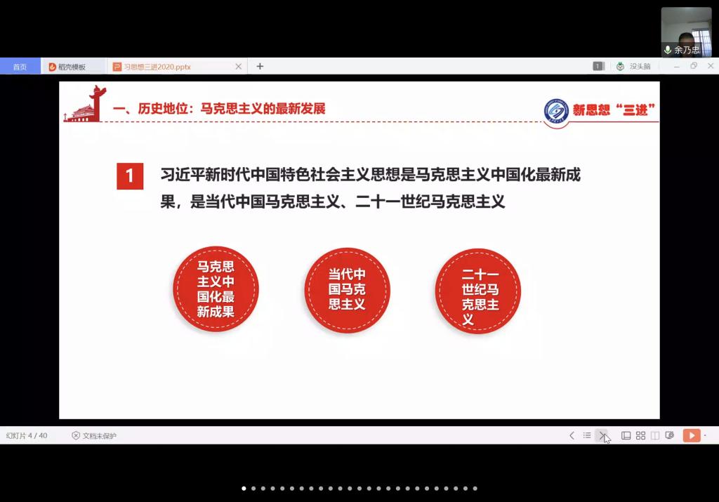 习近平新时代中国特色社会主义思想专题由马克思主义学院教授余乃忠主讲。余乃忠从历史地位、主要内容、科学体系、实践要求四个方面详细阐述了马克思主义与中国实际结合的历史脉络,明确了“八个明确”与“十四个坚持”为主要内容习近平新时代中国特色社会主义思想历史地位强调学生党员发展对象要不忘初心牢记使命,锐意进取埋头苦干。余乃忠生动又接地气的讲授让学员们对习近平新时代中国特色社会主义思想理解更加深刻透彻。