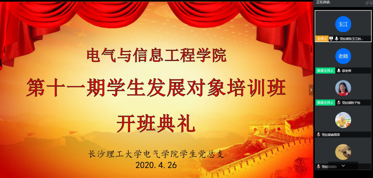 4月26日举办的开班典礼上,学生党员代表电气学院湖北学生临时党支部书记袁雨薇做代表发言并分享了她在抗疫期间的经历感悟电气学院党委副书记陈仁凯围绕“如何在疫情影响下上好党课”的话题对学员提出要提高自觉性深入理解课程内在逻辑关系的要求。院学生党总支副书记邵巧艳解读了培训班管理条例并强调大家要端正态度,学懂、弄通、悟透做实上下功夫