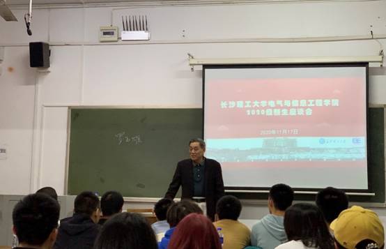 11月17日下午,电气学院在金盆岭校区12教107召开2020级新生座谈会,电气学院关工委主任罗玉雄,2020级辅导员杨宸君、黄文韬及新生代表一同参加此次座谈会。