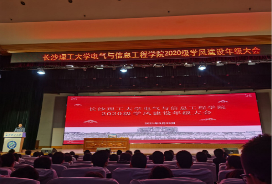 3月23日晚,电气学院2020级学风建设大会在金盆岭校区5教大礼堂召开,电气学院党委副书记任艮丰、2020级辅导员杨宸君及2020级全体学生参加。会议由2020级辅导员黄文韬主持。