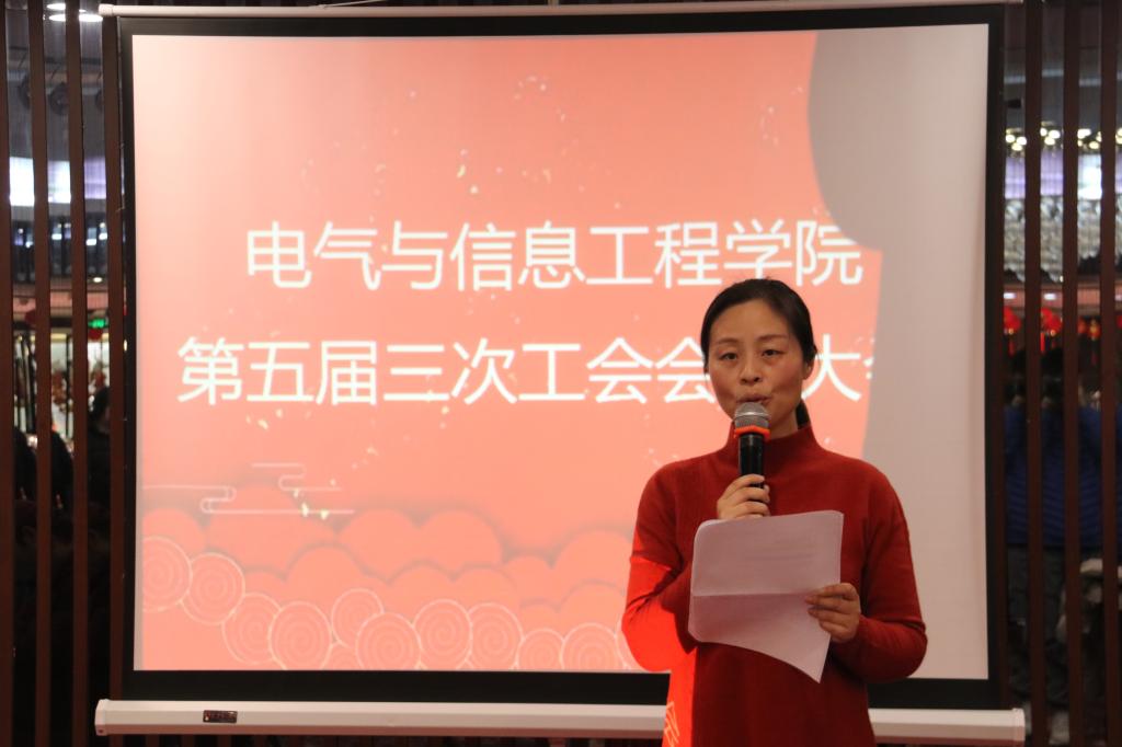 1月11日,电气学院第五届第三次工会会员大会在云塘校区国际学术交流中心举行。学院全体教职工、工会会员参加了此次会议。会议由院工会主席夏向阳主持。
