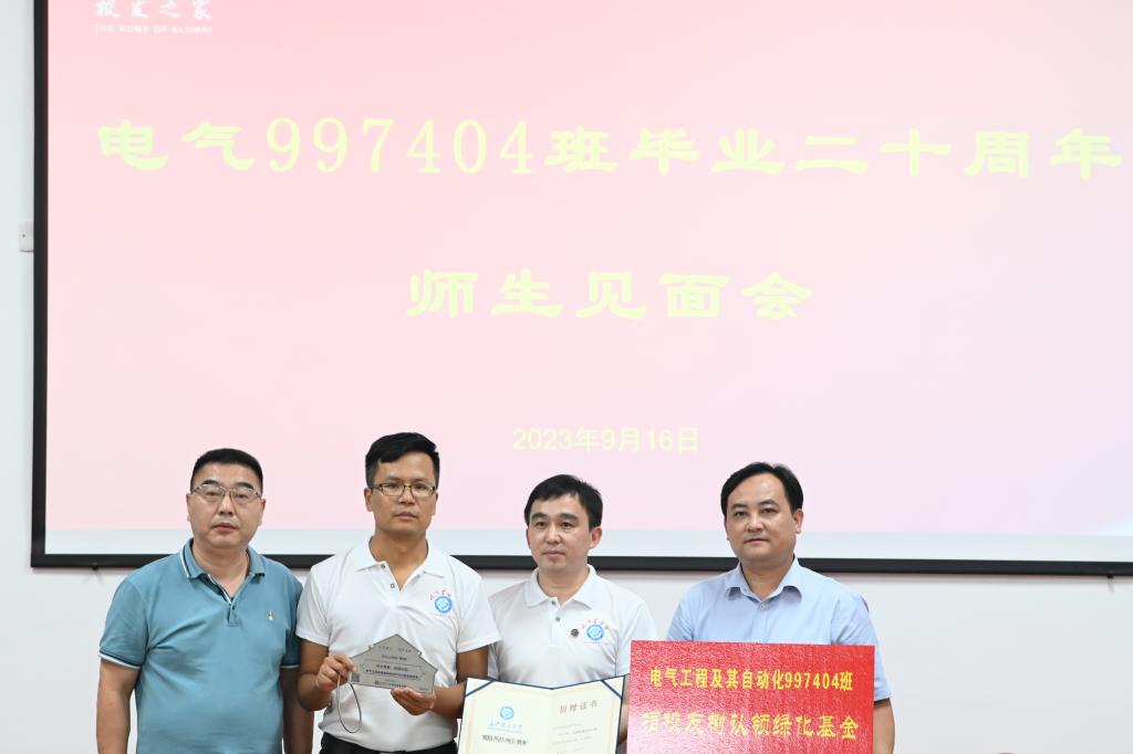 9月16日,电气997404班校友毕业20周年重返校园,在秋阳灿烂里共同追忆青葱岁月继续教育学院党总支书记何纯芳、校友中心副主任肖晖,学院党委书记伍接朝、组织员黄永华、吴文斌及任课教师代表汤放奇、罗玉雄等老师受邀出席座谈会。