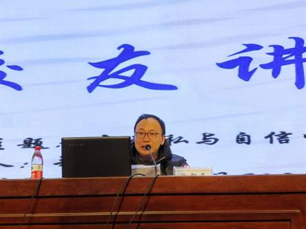 1126日晚,电气学院校友讲坛在金盆岭校区5教大礼堂举行,99届优秀校友长沙科智防雷工程有限公司董事长郑智勇以《在无私与自信中发展壮大》为题进行主讲。电气学院党委副书记任艮丰,2020级辅导员杨宸君、黄文韬及全体新生一同参加此次活动。