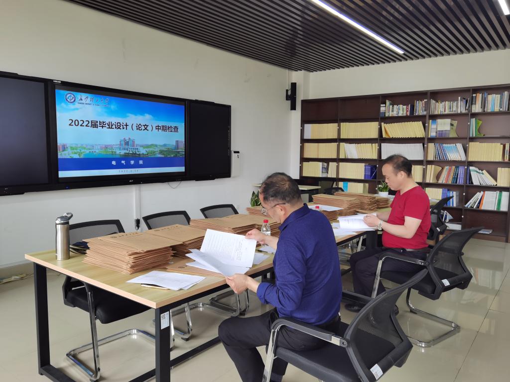 为加强2022届本科毕业设计(论文)指导和管理,及时了解毕业设计(论文)进度和存在的问题,增强毕业设计(论文)指导的针对性和有效性,提高毕业生毕业设计(论文)水平,426日,电气学院在工一B402开展了2022届毕业设计(论文)中期检查工作。