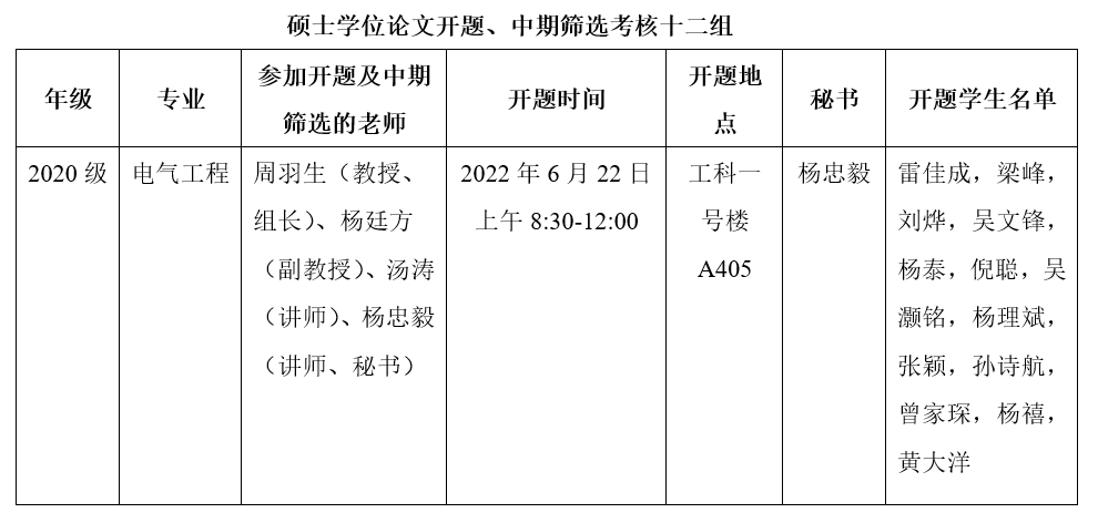 2022年研究生学位论文开题及中期筛选考核安排表(十二)