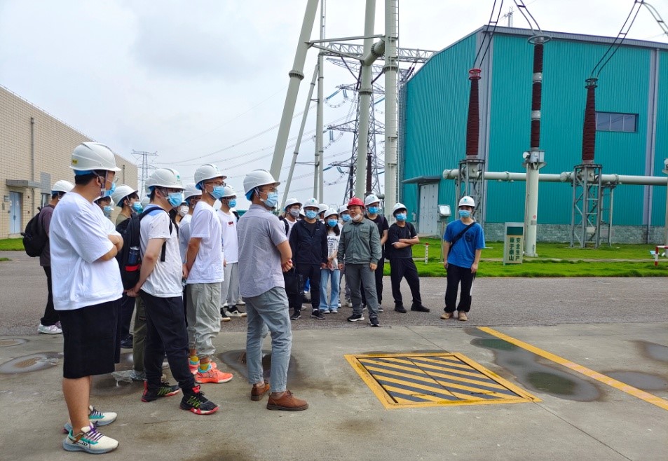 随后,蒋久松和电气学院夏向阳教授、换流站运维班班长刘源共同为研究生授课。结合换流站生产实践,研究生在换流站工作人员的带领下参观直流场、交流GIS500kV交流滤波器场区、调相机等功能区域,夏向阳结合专业课程知识联系现场详细介绍了各设备的结构和运行原理,并结合中西方电力工业体制的比较,为同学们介绍了中国特高压技术发展的历程。