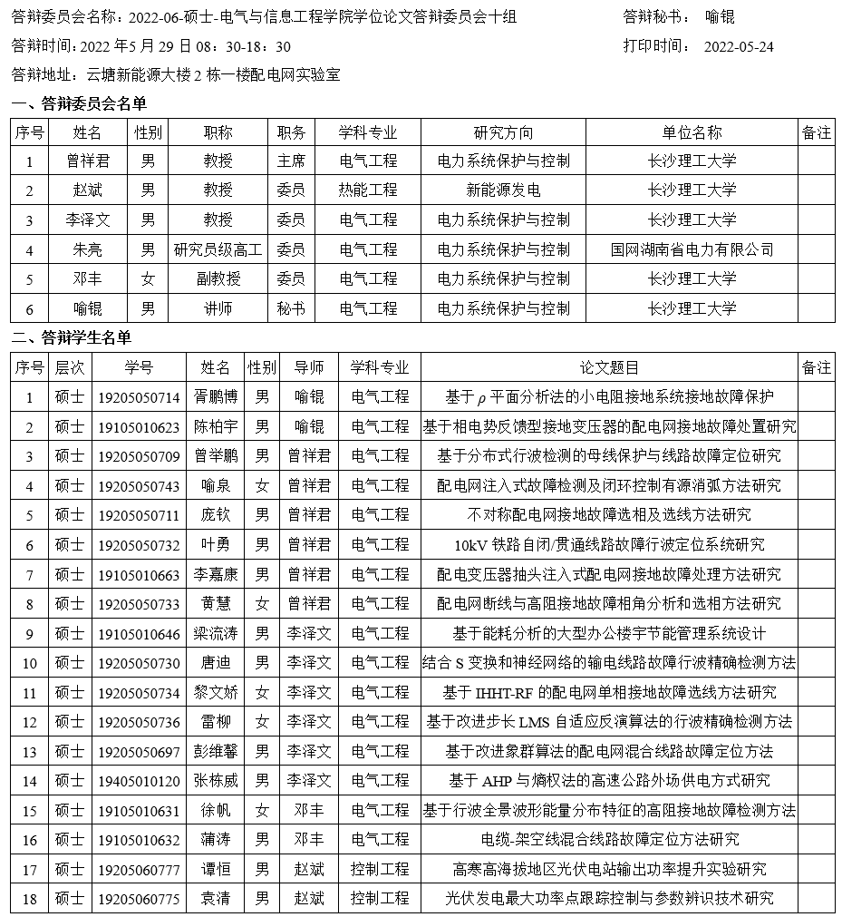 电气与信息工程学院2022年6月毕业研究生答辩安排(十)已发布,请相关同学提前打印准备好《答辩表决票》、《答辩安排表》、《答辩申请表》,于答辩前5个工作日提交得到工一B501研究生办完成盖章并做好相关答辩准备。